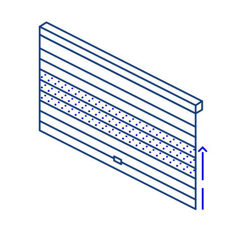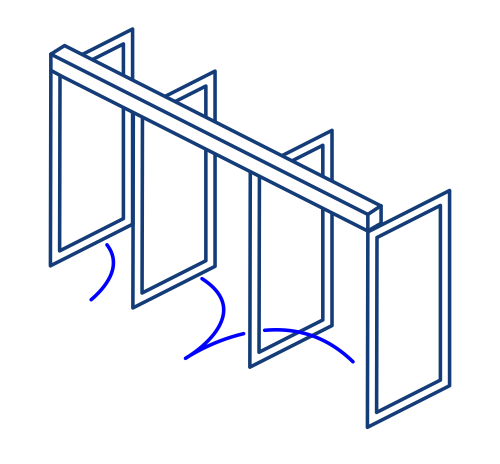 Em caso de emergência, as folhas abatem-se empurrando manualmente para o exterior e dobram-se nos lados, para permitir uma ampla passagem livre de evacuação maximizando a passagem.