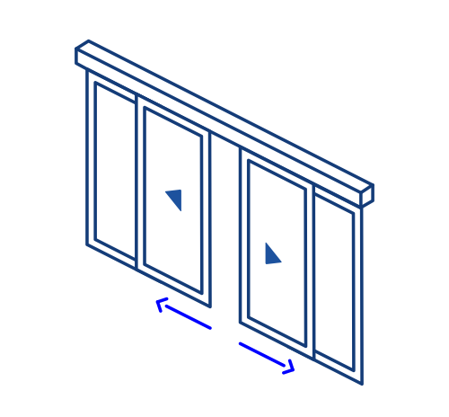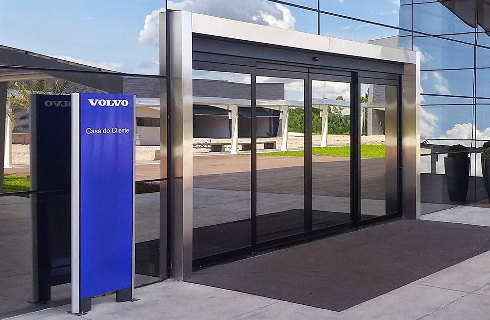 Porta automática mais popular e funcional. Recomendada em entradas e saídas públicas, onde a circulação de pessoas for intensa ou onde a segurança dos utilizadores depender da fluidez do tráfego.