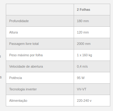 Segmentos de passagem a 90º, 120º ó 180º (2, 3 ou 4 folhas móveis).