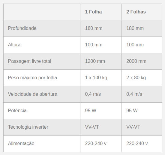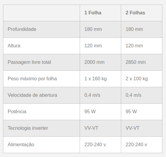 Características Técnicas portas de correr automática